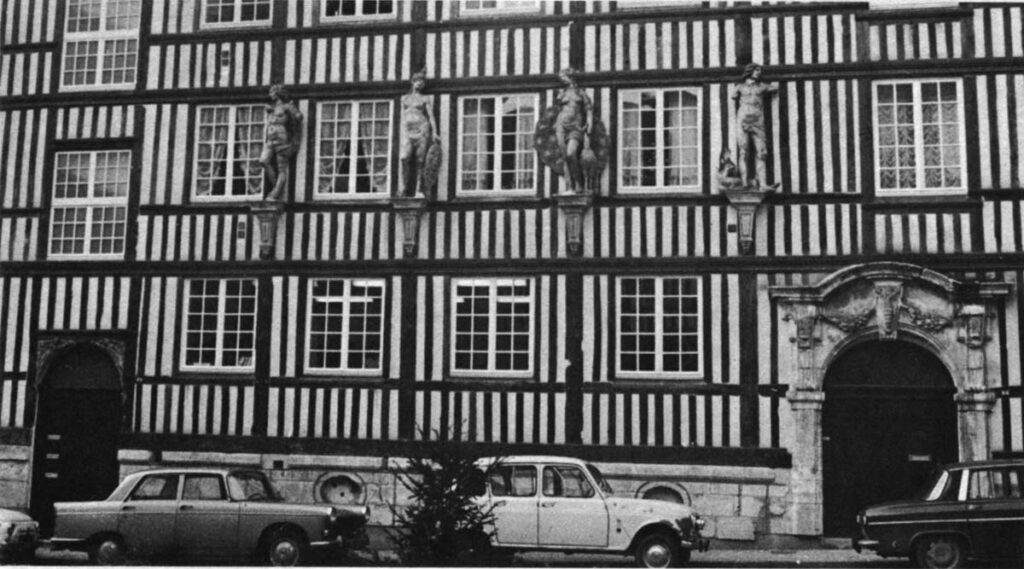 The harbor, too, is still the junction of Seine River barges and ocean freighters, as it has been for ten centuries. Great cranes now fill the skyline before the city’s steeples, but the mind’s eye fills in masts and spars.
